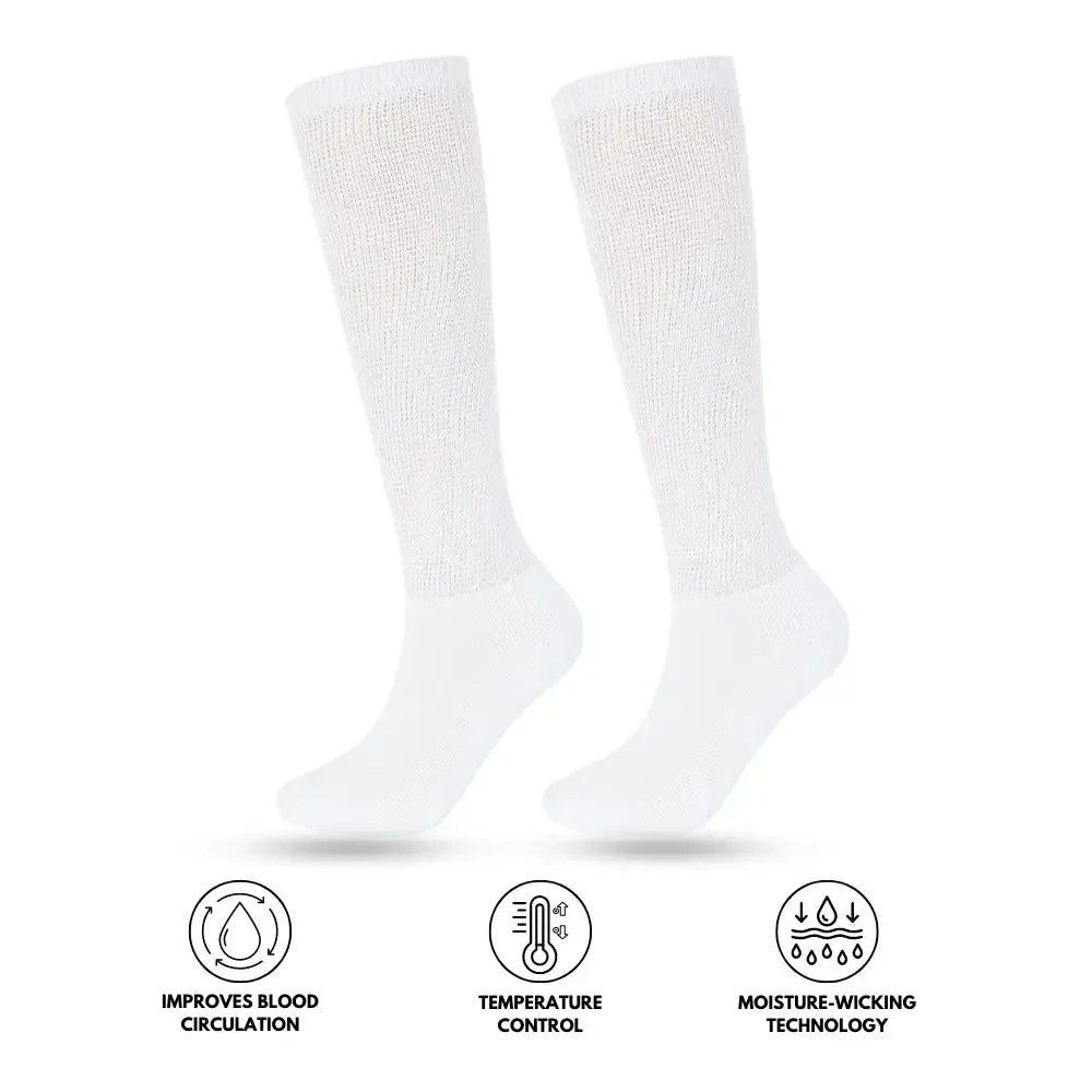 Podiatrists nationwide advocate for the regular use of diabetic socks to enhance leg health and alleviate discomfort. They recommend the extra cushioning in diabetic socks to provide targeted support in high-pressure areas, such as the heel and ball of the foot. Whether you’re walking, standing, or simply enjoying a quiet day, this added support helps absorb impact, reduce pressure, and ensure maximum comfort.